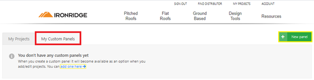 1) Head to the "My Projects" page and tab over to "My Custom Panels". Once you're on this tab you can click on the "+ New panel" button or the "add one here ->" link to create a custom panel.