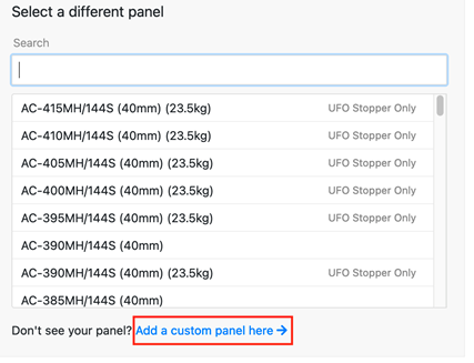 2) You can also add a custom panel when picking a panel for your project. If the module you're looking to use isn't listed, click the "Add a Custom Panel here ->" link to add a custom module.