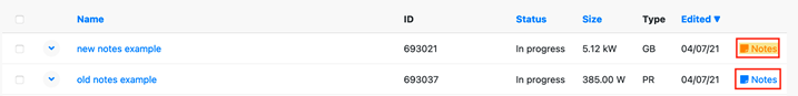 You'll also notice a "notes" icon for projects that have notes in the "Projects" page. These icons will be highlighted in yellow for notes written within the last day.