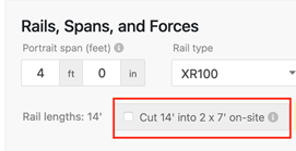 In the Rail, Spans and Forces section of your project, you can now choose to cut 14' rails into 2 7' sections on-site