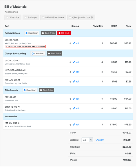 By checking this box, the Design Assistant will look for opportunities to optimize total rail length by cutting a 14' rail into 2 x 7' pieces. This can reduce the total amount of rail needed for a project for installers willing to perform on-site rail cutting.