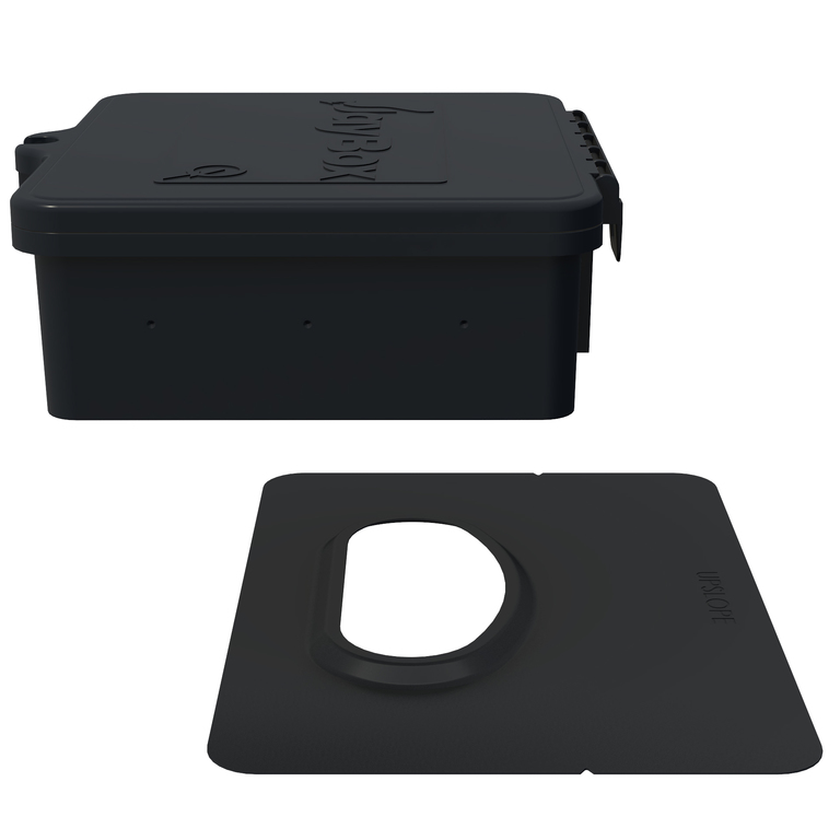 Now available to add to your project: JayBox™. JayBox™ is an ever-adaptable junction box, designed to securely enclose wires on nearly any solar project—with ample space to shelter up to 4 module strings. The box is UL-listed, NEMA-3R-rated, and supports up to 1500-volt systems. It is made of a NORYL™ resin, known for its long-lasting UV-resistance and impact strength.