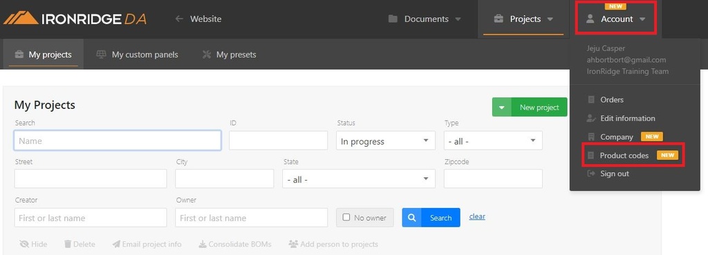 To access this feature, start by hovering over the account tab. You'll see an option for you to select "Product codes".