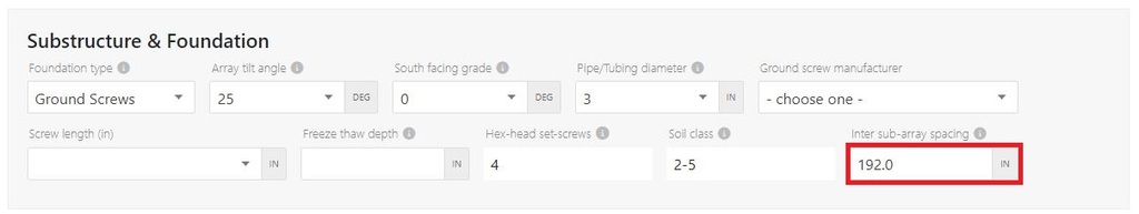 Click on the information bubble for "Inter sub-array spacing" in the "Substructure & Foundation" section to get additional information.