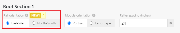 Design Assistant users now have the ability to adjust the rail orientation. This includes running the rails vertically (North-South) or horizontally (East-West) on a roof.